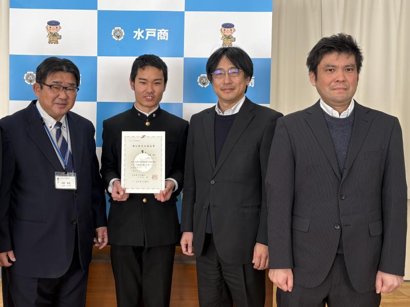 2月19日(水)に常陽銀行様が来校され、表彰を受けました。本校は第1回にも入賞を果たしています。その時の入賞者であり、現在常陽銀行に勤務されている関谷様から表彰状の伝達を受けました。情報ビジネス科の受賞者の皆さん、おめでとうございます。受賞者の感想はこちらから。